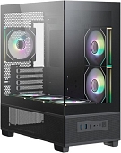 Есть в наличии Mini Tower, БП отсутствует, для плат micro-ATX/mini-ITX, с 6 вентиляторами в комплекте, с контроллером вращения, окно: закаленное стекло, видеокарта до 400 мм, охлаждение ЦП до 165 мм, пылевые фильтры, 2xUSB-A 3.2 5Гбит/с, 1xUSB-C 3.2 10Гбит/с, цвет черный