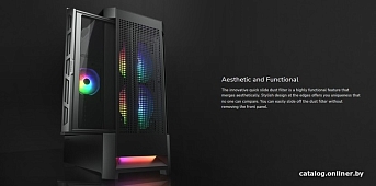 Есть в наличии Mid Tower, БП отсутствует, для плат ATX/micro-ATX/mini-ITX, без вентиляторов в комплекте, окно: закаленное стекло, видеокарта до 340 мм, охлаждение ЦП до 158 мм, пылевые фильтры, 2xUSB 2.0, 1xUSB-A 3.2 5Гбит/с, цвет черный
