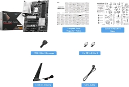 Есть в наличии ATX, чипсет AMD X870E, память 4xDDR5/DDR5 CUDIMM до 8200 МГц, слоты: 3xPCIe x16 5.0, 1xPCIe x1, 3xM.2, 802.11be (Wi-Fi 7)+Bluetooth 5.4, 14+2+1 фаз питания