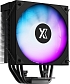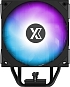 Информация | - Однобашенная конструкция с четырьмя высокопроизводительными тепловыми трубками для эффективного отвода тепла. - Технология прямого контакта (H.D.T) для повышения эффективности охлаждения. - Высокоэффективный вентилятор диаметром 120 мм, создающий мощный и стабильный воздушный поток. - Полностью чёрное покрытие для стильного и минималистичного внешнего вида. - Верхняя крышка и вентилятор оснащены FRGB-подсветкой, добавляющей динамичные световые эффекты. |